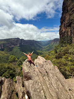 A subida leva até a Gruta do Castelo, um dos pontos mais conhecidos do percurso, e continua em direção aos mirantes do topo, onde o visual se abre completamente em 360°. Dali, é possível contemplar toda a imensidão das montanhas ao redor e também a região da Floresta do Calixto, um trecho preservado de vegetação nativa que contrasta com o cenário das formações rochosas do vale.