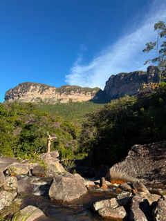 Em seguida, a trilha segue pelos Gerais do Rio Preto, uma planície no topo da serra com vista panorâmica para as montanhas e um cenário aberto que parece um jardim natural. Inclusive, com parada no Rio Preto para mergulho e apreciação.