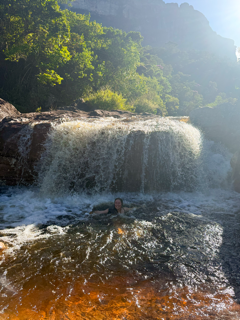 Depois desse momento, iniciamos a descida mais forte rumo ao interior do vale, passando pela igrejinha e entrando na região do Rio Pati. A partir daí, o caminho passa a acompanhar o rio, com várias paradas ao longo do percurso. Passamos pelas cachoeiras Altinas, Funis e Bananeiras, alternando trechos de caminhada com paradas para banho nas cachoeiras e descanso ao longo do rio.