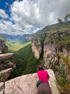 A primeira grande parada do dia foi o mirante do Cachoeirão por cima, um dos cenários mais impressionantes de toda a expedição. De lá, a gente consegue ter a dimensão completa do cânion, um contraste enorme com a experiência do dia anterior, quando estávamos lá embaixo, dentro dele. Estar ali em cima torna tudo ainda mais especial e mostra a escala absurda desse lugar.