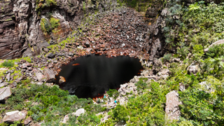 Saímos da casa do Seu Eduardo e iniciamos o quarto dia da travessia no Vale do Pati com destino ao Cânion do Cachoeirão por baixo, um dos trechos mais impressionantes de toda a expedição. A caminhada segue por trilhas dentro da mata e por trechos de leito de rio e grandes pedras, em um cenário mais fechado e preservado, até chegarmos ao Poço do Coração, que se revela aos pés do cânion.