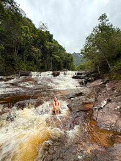 Depois de aproveitar o topo, iniciamos a descida de volta ao vale. No caminho, fizemos uma parada para banho de rio, um dos momentos mais revigorantes do dia, antes de seguir de volta para a base.
